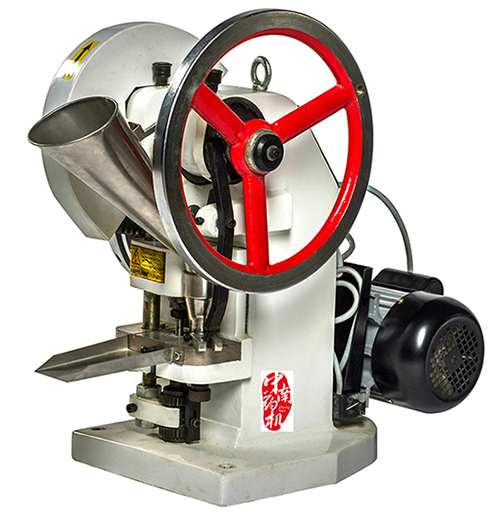 單沖壓片機用于將各種顆粒狀原料壓制成片劑,可廣泛用于制藥、化工、食品、醫(yī)院科研等單位試制成小批量生產(chǎn)各種片劑、糖片、鈣片、異形片等。其特點是一種小型臺式電動連續(xù)壓片的機器,也可以手搖。具有使用方便,易于維修,體積小、重量輕,機上安裝一副沖模,物料的充填深度,壓片的壓力、厚度均可調(diào)節(jié)。