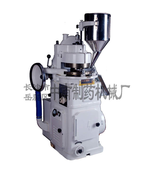 ZP-17旋轉(zhuǎn)式壓片機(jī)用于將各種顆粒狀原料壓制成圓片狀,還能壓制各種幾何形狀的異形片。適合于批量生產(chǎn)直徑較大的鈣片、奶片、糖果、化工冶金電子原件。壓片時(shí)轉(zhuǎn)盤(pán)速度、物料的充填深度,壓片厚度均可調(diào)節(jié)。機(jī)上的機(jī)械緩沖裝置可避免過(guò)載而引起的機(jī)件損壞。機(jī)體一側(cè)配有吸粉箱,通過(guò)吸咀可吸取機(jī)器運(yùn)轉(zhuǎn)時(shí)產(chǎn)生的粉塵,避免粘結(jié)堵塞,并可回收原料重新使用。本機(jī)曾獲國(guó)家醫(yī)藥管理局優(yōu)質(zhì)產(chǎn)品獎(jiǎng)。