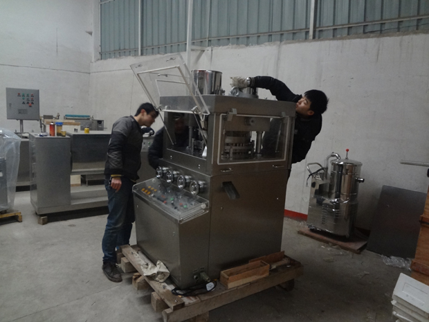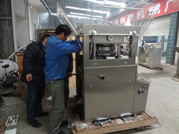 2011年12月,湖南化工職業(yè)技術(shù)學(xué)院向我廠購買了ZP-35D高速全封閉變頻壓片機(jī),圖為現(xiàn)場調(diào)試驗(yàn)收實(shí)況。